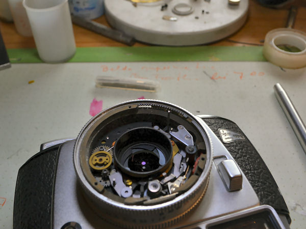 Dies ist leider das letzte Bild von der Frontseite des Verschlusses. Man erkennt immer noch die geöffneten Verschlusslamellen. Man erkennt aber auch, dass von hier vorne nichts dagegen gemacht werden kann. Schön wäre es gewesen, aber so komme ich nicht weiter. |