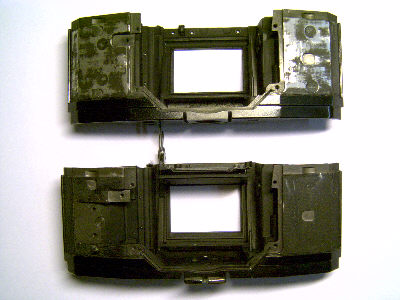 Nur hätte ich dann auf die neuesten Filmaufwickelspulen verzichten müssen, denn extra dafür besitzt das Gehäuse links und rechts die zwei halbmondförmigen Ausfräsungen und weitere kleine Veränderungen.