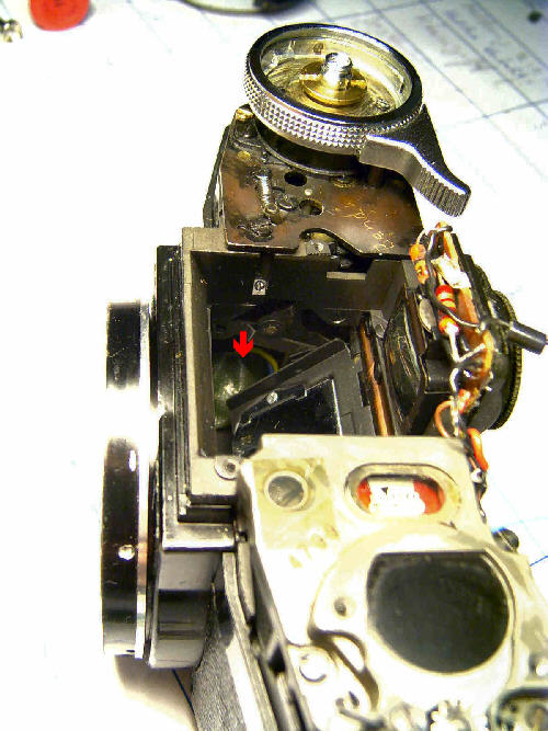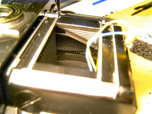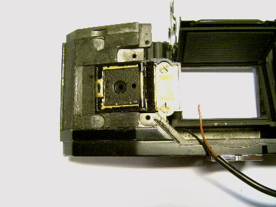 Mittlerweile ist das Projekt weiter fortgeschritten, die Lücke im Gehäuse ist mit Polyester verschlossen. Der Funktionszustand der Kamera ist bis auf die Belichtungsmessung, bzw. Belichtungsautomatik wieder hergestellt. Der neue Blitzkontakt funktioniert.