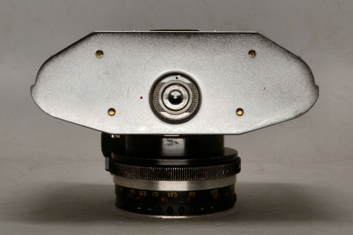 Auch über diese Kamera gibt es diverse Seiten im Internet und auch vor Erfindung dieses Mediums gab es dazu allerlei Bücher. Daher möchte ich zur Geschichte und Technik keine Worte verlieren. Ich bekam sie in einem Konvolut mehrerer Kameras, war nach Besitz des Modells Ia und Ib auch nicht besonders an ihr interessiert, sie ist aber in meiner Achtung deutlich gestiegen, nachdem ich sie öffnete und mir den seltenen vertikal ablaufenden Tuch-Schlitzverschluss einmal genau ansah. Sie bietet stufenlos Verschlusszeiten von 1/2 Sekunde bis zu 1/500 Sekunde. Die Blitzsynchronisierung ist bei 1/ 60Sekunde. So wie abgebildet. | ||||||||||||||||||||