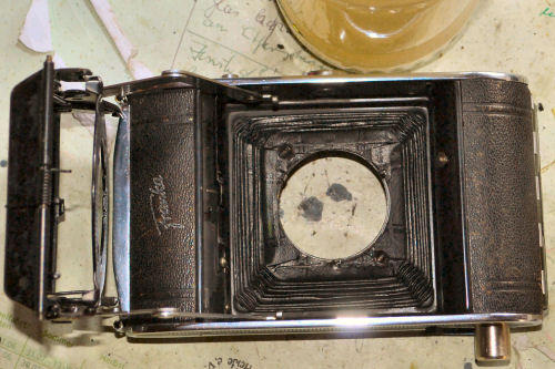 Zunächst wollte ich davon nichts im Netz vorstellen, daher hatte ich mir mit den Fotos auch keine Mühe gegeben, so sehen sie nun auch aus. Aber erkennen kann man doch, dass der Balgen nicht so einfaltete, wie gefordert. | ||||||||||||||||||||