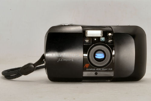 Diese Kamera passt hier nicht so recht ins Schema, aber ich bekam sie kürzlich geschenkt. Nun gehört sie irgendwie doch hierher. Sie entstand, als man nach Rollei und Minox Kameras immer kleiner bauen wollte. Mit allem drum und dran natürlich. Die mju kann eigentlich alles, nur nichts manuelles, lediglich den Blitz kann man an, aus oder dazu schalten. Die Kamera erkennt die Filmpatrone, zumindest wenn sie DX kodiert ist, sie stellt die Fokussierung selber ein, sie zieht den Film alleine ein und spult ihn zurück, sorgt natürlich auch wie ein Winder für den Vortrieb. Vermutlich habe ich noch etwas vergessen.