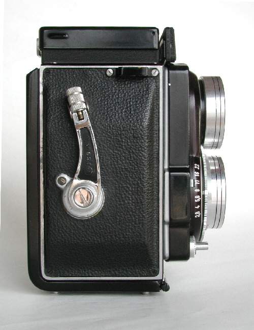 Automatic bedeutet nicht etwa Belichtungsautomatik, sondern verweist auf die bequeme Tatsache, dass die Kamera mit einer halben Kurbelumdrehung nicht nur das neue Bild nach vorn transportiert, sondern auch den Verschluss gleich wieder spannt. | ||||||||||||||||||