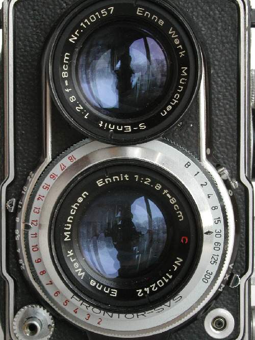 Die neue Kamera in meiner Sammlung. Ein starkes Stück Fotoapparat. Die Zutaten passen. Prontor SVS, ein zuverlässiger Verschluß und das sehr seltene Ennit von den ENNA Werken aus München. Dieses Objektiv machte auch die Ausnahmekamera Balda Super Baldax zum gesuchten Sammler- und Gebrauchsobjekt. Im Internet sind dazu reichlich Lobeshymnen vorhanden. |